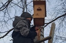 Устанавливали скворечники для птиц./Кошларга оялар ясап урнаштырдык.