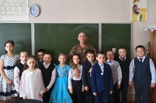 Обучающиеся Салаусь-Сардыганской НОШ встретились с ветераном СВО Газизов Рустам Гайфулловичем./ Сәрдегән башлангы мәктәбе укучылары СВО ветераны Газизов Рөстәм Гайфулла улы белән очрашу үткәрде.
