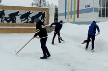 Волонтерский отряд очистил территорию памятника от снега./Волонтерлар отряды һәйкәл территориясен кардан чистартты.