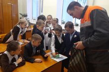 В день профориентации обучающиеся ознакомились с профессией ветеринар./Профориентация көнендә башлангыч сыйныф укучылары ветеринар һөнәре белән танышты.