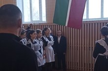 На утренней линейке сделали итоги уходящей неделе./Иртәнге линейкада узган атнада башкарылган эшләргә йомгак ясалды.