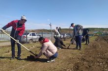 Обучающиеся посадили деревья вокруг спортивной площадки/Спорт мәйданчыгы тирәли укучылар агачлар утыртты