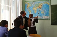 В рамках недели географии, химии и биологии Накипов А.Р. в 7 классе провел открытый урок на тему:"Рельефы и полезные ископаемые Евразии/ Химия, биология һәм география атналыгы кысаларында Нәкыйпов А.Р. 7нче сыйныфта «Евразиянең рельефы һәм файдалы казылмалары» дигән темага ачык дәрес үткәрде