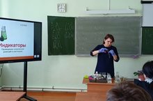 В рамках недели химии, биологии и географии Бадгиева Р.Г. провела урок на тему «Индикаторы» 8 классе/ Химия, биология һәм география атналыгы кысаларында Бадгиева Р.Г..8 нче сыйныфта « Индикаторлар» дигән темага ачык дәрес үткәрде