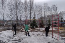Уборка и облагораживание территории школ / Балтач урта мәктәбе тәрбиячеләре үз территорияләрен чистарту эшендә катнашты.