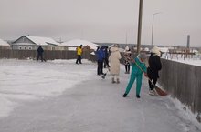 Во время зимних каникул ученики приходят с графиком на уборку катка. Большое спасибо учащимся 5-8 классов, классным руководителям за организацию работы!!!