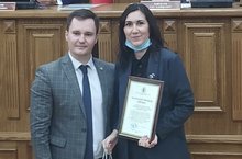 Алия Ибраһимова җитәкләгән волонтерлар “Җиңүгә адымнар” дип аталган Республика проектының җиңүчеләре. Фәрит Мөхәммәтшин кулыннан аларга Рәхмәт хаты тапшырылды.