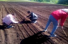 Мәктәп бакчасында эш гөрли башлады. Укытучылар җиләкләр күчерделәр, суган, кишер, чөгендер утырттылар.
