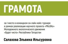 Команда заняла 1 место в командном он-лайн кейс-турнире в рамках реализации научного проекта «PRоЭКо» Молодёжного экологического движения «Будет чисто» РТ