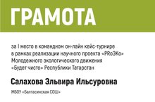 Поздравляем Шакирзянову Айзилю и Салахову Эльвиру с победой в командном онлайн кейс-турнире, проведенном в рамках Международного экологического движения «Будет чисто» РТ