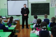 Профориентационная беседа начальника УУП Фасихова Фаиля Загитовича в 3-в классе.