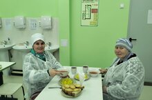 Балаларның ашау сыйфатын тикшерү максатыннан эти- әниләр мәктәпкә килделәр. Алар ашаудан бик канәгать калдылар./ В школе родительский контроль.