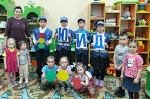 ЮИД отряды балалар бакчасында/ Отряд ЮИД участвует в акции "Осенняя неделя добра". Сегодня они посетили детский сад. Проводили игры "Найди пару, "Светофор"