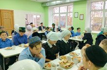 Балаларда әхлакый сыйфатлар тәрбияләүдә төрле чаралар үткәрәбез. Шул максаттан Корбан ашы уздырдык Имам вәгазьләрен тыңлап, матур табын артында утырдык.