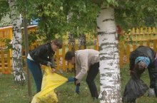 Экологик марафон кысаларында мәктәп территориясендәге чүпләрне җыештырдык 31.08.2015