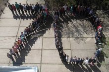 "Хәтер марафоны" акциясе. Укучылар Җиңү факелын Шеңшеңәр мәктәбе командасыннан алдылар һәм Яңгулга кадәр йөгереп, факелны шул мәктәп командасына тапшырдылар. 07.05.2015