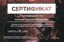 39 учащихся и 17 учителей приняли участие в Международной Акции "Тест по истории Великой Отечественной Войны" 02.12.2022