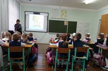 Воспитатели посетили уроки своих воспитанников. Учительница 1 Б класса Никитина Светлана Юрьевна провела открытый урок по русскому языку. Дети познакомились с буквой "М". Научили писать заглавную и строчную и определять звук в слове (мягкий, твердый, звонкий или глухой)