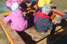 Дети средней группы любят проводить свое время во время прогулки на песочнице