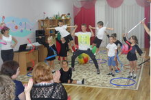 Спортивный танец с участием детей и сотрудников для руководителей на августовском совещании