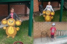 Совместно с детьми подготовительной группы обновляем поделки на участке детского сада.