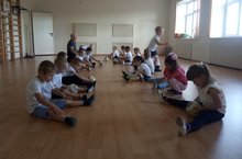 Физкультура. Учить детей энергично отталкиваться от пола и приземляться на полусогнатые ноги подпрыгивая вверх, упражнять в прокатывании мяча. Физкультура шогелендэ балаларны идәннән көчле итеп читкә этәрергә һәм ярым богелгэн аякларга төшәргә, өскә сикерергә, туп әйләндерүдә күнегүләр ясарга өйрәтэбез.