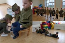 В честь Дня Победы в старшей группе провели военно - спортивную игру "Мы - солдаты!" -