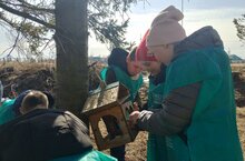 Члены "Движения первых" повесили скворечники совместно с сотрудниками заказника "Балтасинский".