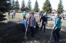 Отряд "Волонтеры Победы" провели уборку вокруг территории памятника, посвященный погибшим героям войны.