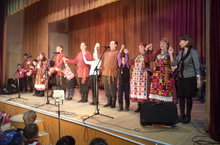 Сегодня нам посчастливилось всей школой побывать на концерте Удмуртского государственного театра фольклорной песни и танца "Айкай". Программа концерта была занимательной и интересной. учащиеся и педагоги участвовали в викторине и получили приз - выступить на одной сцене с артистами театра.