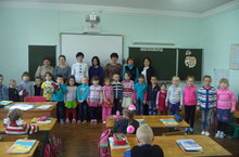 На праздник Дня Учителя пришли малыши из д/с "Экият" и поздравили учителей начальных классов: рассказали стихи, спели песню и вручили цветы.