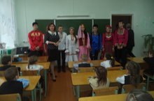 Студентки 4 курса УдГУ - наши выпускницы, Константинова Е.П. и Хрисанова И.И. провели зачетный урок по удмуртской литературе в 6-7 классах.