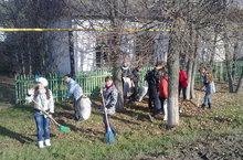 12 октября прошла в школе акция "Чистые дорожки". Учащиеся 7,8 и 10-х классов вышли на уборку территории школы.