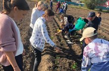 Учащиеся 2-б класса совместно с классным руководителем Степановой О.П. помогли собрать урожай на грядке семьи мобилизованного - Наздекова Виталия. Молодцы!