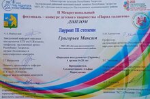 Учащиеся нашей школы Григорьев Максим, Григорьева Мария, Смагина Елизавета приняли участие во II Межрегиональном фестивале-конкурсе детского творчества "Парад талантов", который прошел в РДК. Поздравляем Григорьева М., лауреата III степени в номинации "Народные инструменты", Григорьеву М., лауреата III степени в номинации "Речевое исполнительство", Смагину Е., лауреата I степени в номинации "Изобразительное искусство"!