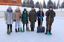 Во время зимних каникул учащиеся 6-11 классов оказывают посильную помощь в очистке катка от снега.