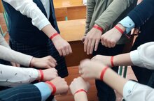 В школе прошла акция "Красная ленточка". Ленточка цвета крови, свёрнутая петелькой, является Международным символом борьбы со СПИДом – символом нашего сострадания, поддержки и надежды на будущее без СПИДа.