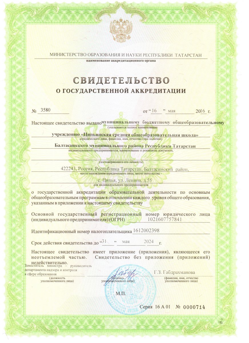Муниципальное бюджетное общеобразовательное учреждение «Ципьинская средняя общеобразовательная школа» Балтасинского муниципального района РТ