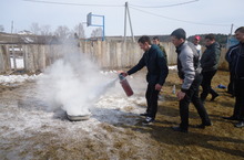 Югары сыйныф укучылары белән ТИН укытучысы Константинов А.Н. янгын булган очракта үз-үзеңне тоту кагыйдәләре, янгынны сүндерү очраклары турында практик дәрес үткәрде.