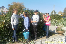 Бүген мәктәп ярминкәгә әзерләнә! Казанлыларны бәрәңге, кишер, чөгендер кебек яшелчәләрдән тыш гөлҗимеш, кара миләш, йомырка, гөмбә ише ризыклар белән дә сөендерергә уйлыйбыз! (рәсемдә: 5нче класс укучылары гөлҗимеш җыя)