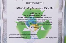Субашская школа заняла 3 место по сбору отработанных батареек в номинации "Самая активная школа"