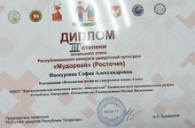 Сегодня прошел гала концерт, зональный этап Республиканской удмуртской культуры "Мудорвай"( "Росточек". Наша маленькая звездочка- Ишмурзина София Александровна заняла 3 место. Поздравляем! Желаем ей успехов в ее начинаниях. Спасибо руководител и родителям.