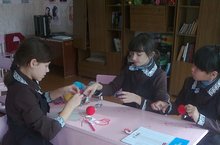 "Кул эшләре" кружогы әгъзалары бүген бәйләнгән киемнәрне бизәү эше белән шөгыльләнделәр.