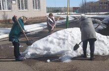 В рамках санитарно-экологического месячника сотрудники школы провели субботник по очистке снега с территории и прилегающих участков.