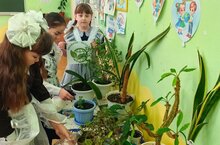 В рамках трека "Орленок-эколог" учащиеся 2 класса заботятся о комнатных растениях.