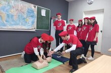 В завершении цикла мероприятий, преподаватель ОБЗР Арсланов А.Р. провёл вместе с юнармейцами школы практическое занятие, для учащихся 7-8 классов, «Оказание помощи (реанимация) при остановке дыхания». Выполнялись тренировочные упражнения по сердечно- лёгочной реанимации на тренажере. -