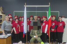 Наш герой в зоне СВО находится с первых дней по мобилизации. Сейчас он приехал в краткосрочный отпуск и зашел в родную школу пообщаться с учащимися и учителями.