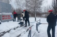 Юнармейцы и волонтеры школы после прошедшего снегопада организовали уборку у обелиска воинам-землякам, погибшим в годы Великой Отечественной войны.
