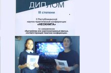 Поздравляем учащихся 9 класса Зиннатшину А. и Герасимову М. и их руководителя Кузьмину Н.Ю. с дипломом третьей степени за участие в республиканском конкурсе "Неокнига".