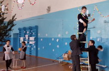 Сегодня школьники занялись украшением зала и елки к новогоднему утреннику.